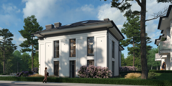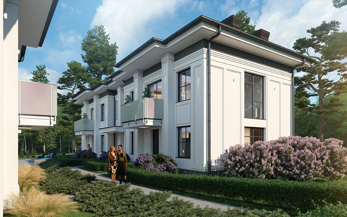 Apartament znajdujący się na parterze posiada pokój dzienny z aneksem kuchennym, łazienkę oraz 3 dodatkowe pokoje.
